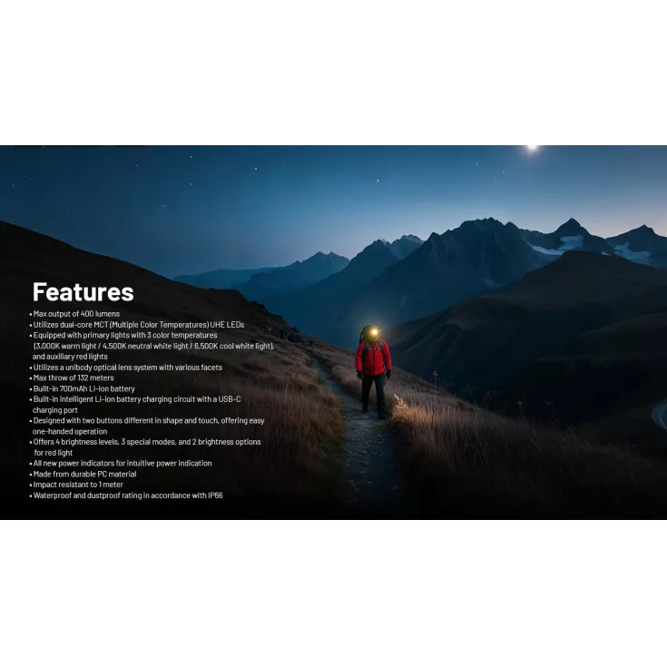 The Nitecore NU25 MCT redefines compact lighting with intelligent versatility and comfort. Delivering up to 400 lumens from a built-in 700mAh Li-ion battery, it’s perfect for runners, hikers, and adventurers who need lightweight, rechargeable illumination in all conditions.